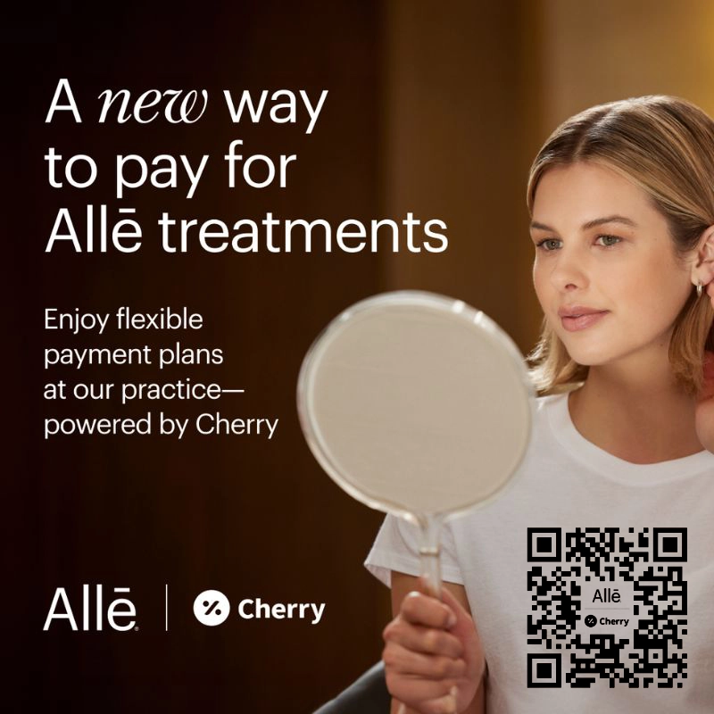 Alle financing through Cherry is a flexible payment solution that allows you to split the cost of your aesthetic treatments into manageable monthly payments. Cherry offers quick approval with no hard credit check, and Alle lets you earn and use rewards points for eligible services. Together, they make it easier to get the treatments you want without paying the full amount upfront.