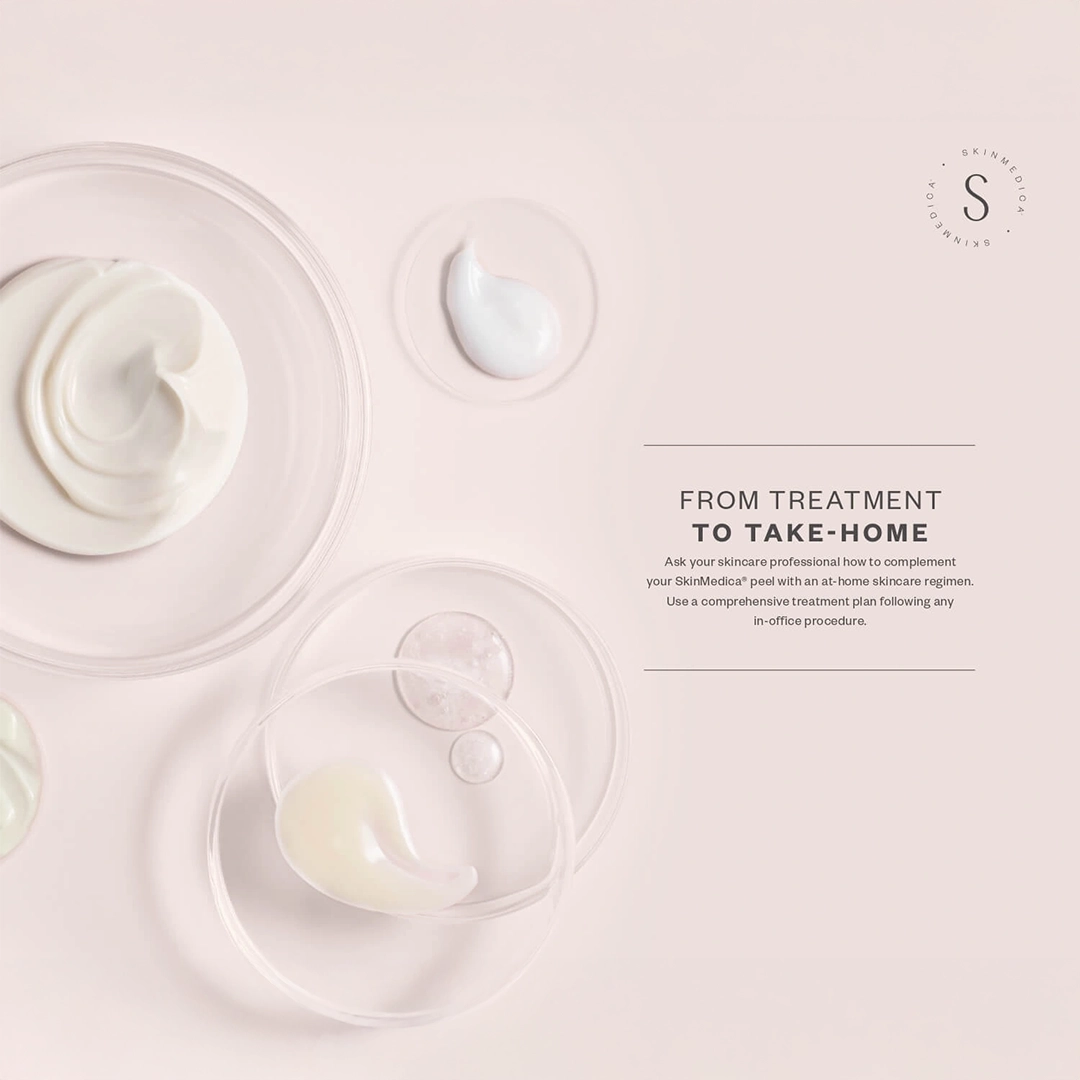 SkinMedica Chemical Peels are professional-grade treatments that target uneven tone, rough texture, fine lines, acne, and discoloration by accelerating skin exfoliation and cellular turnover. These peels eliminate damaged top layers of skin, uncovering a refreshed and more glowing complexion underneath. Whether you’re battling sun damage, aging skin, or stubborn blemishes, SkinMedica offers peels in multiple strengths to match your specific skin goals.